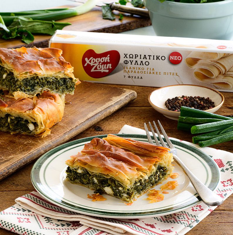 Lightly score the top filo sheets and bake in a preheated oven at 190°C with top and bottom heat for 45-50 minutes.