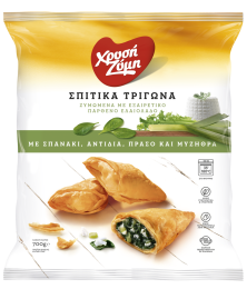 Χωρίς να τα αποψύξετε, τοποθετείτε τα Σπιτικά Τρίγωνα σε ταψί με λαδόκολλα ή αλειμμένο με λίγο λάδι.