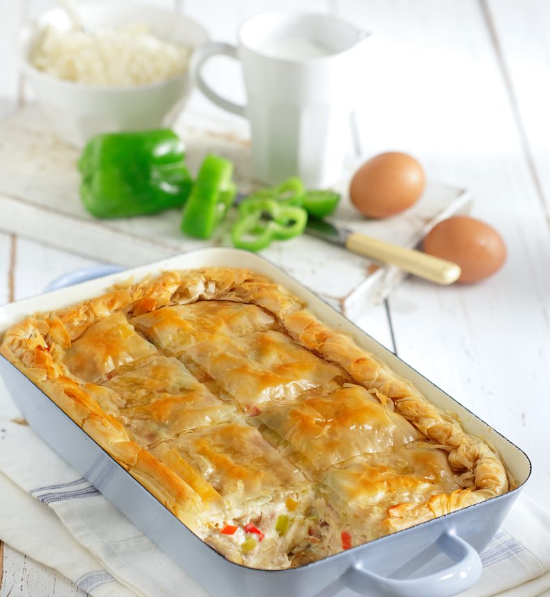 Η κοτόπιτα με πιπεριές και τυριά είναι μια λαχταριστή παραλλαγή της παραδοσιακής πίτας, που συνδυάζει γεύσεις από φρέσκα λαχανικά, ζουμερό κοτόπουλο και πλούσια τυριά. Μια συνταγή που γεμίζει το τραπέζι με άρωμα και νοστιμιά.