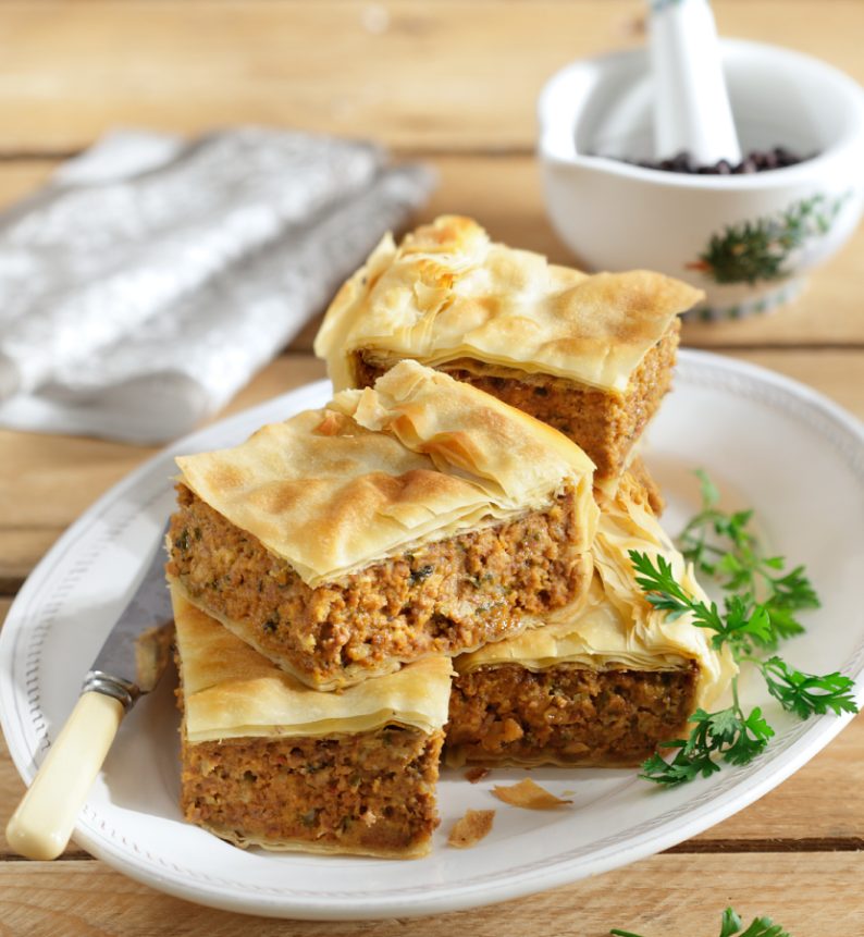 Η παραδοσιακή κιμαδόπιτα είναι ένα από τα πιο χαρακτηριστικά φαγητά της ελληνικής κουζίνας, γεμάτη αρώματα και βαθιά γεύση. Σε αυτή την εκδοχή, ο πρόβειος κιμάς συνδυάζεται με παξιμάδι, κρεμμύδι, ντομάτα και μυρωδικά, ενώ το χωριάτικο φύλλο Χρυσή Ζύμη αγκαλιάζει τη γέμιση προσφέροντας πλούσια υφή και ένταση.