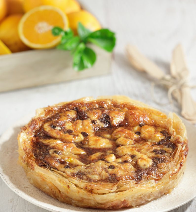 Απολάυστε πορτοκαλόπιτα με σοκολάτα που συνδυάζει το τραγανό φύλλο κρούστας Χρυσή Ζύμη με αρωματική γέμιση πορτοκαλιού, βελούδινες σταγόνες σοκολάτας και σιρόπι λεμονιού-πορτοκαλιού. Ένα γλυκό που κερδίζει τις εντυπώσεις και φέρνει την πιο νόστιμη γεύση στο τραπέζι σας.