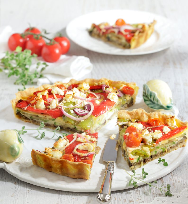 Μια γευστική τάρτα λαχανικών που αξιοποιεί τα πιο νόστιμα λαχανικά της εποχής. Οι μελιτζάνες, τα κολοκύθια, οι πιπεριές και τα ντοματίνια δένουν υπέροχα με τη φέτα και τα αυγά, ενώ η ζύμη κουρού Χρυσή Ζύμη προσφέρει τέλεια υφή και τραγανότητα.